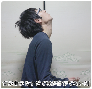 喉を伸ばすのが目的なので、首を後ろに倒しすぎないこと。